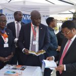 Waziri Mkuu Kassim Majaliwa, akimsikiliza Meneja wa Mahusiano ya Serikali Benki ya NBC, William Kallaghe, wakati akikagua mabanda, katika mkutano mkuu wa 35 wa Jumuiya ya Tawala za Mitaa Tanzania (ALAT), uliyofanyika katika ukumbi wa Malaika, jijini Mwanza, alipomwakimwakilisha Rais Magufuli katika mkutano huo, Julai 23.2019. (Picha na Ofisi ya Waziri Mkuu).