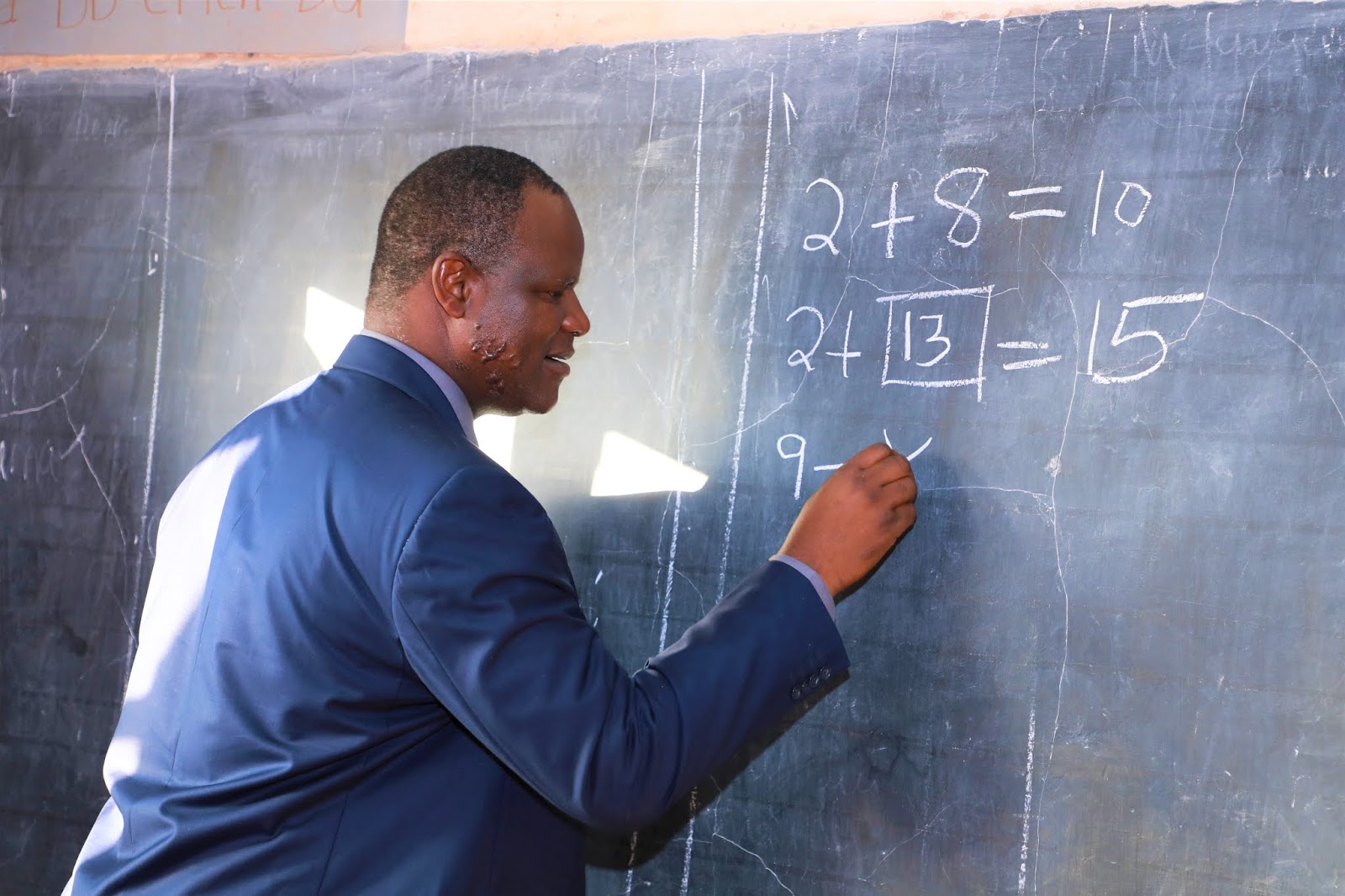 Mbunge wa Jimbo la Vwawa Mkoani Songwe ambaye Waziri wa Kilimo Mhe Japhet Hasunga akifundisha somo la Hesabu kwa wanafunzi wa darasa la saba shule ya msingi Iyula wakati akiwa katika ziara ya ukaguzi wa shughuli za maendeleo katika Jimbo la Vwawa leo tarehe 23 Julai 2019, (Picha Zote Na Mathias Canal, Wizara ya Kilimo)