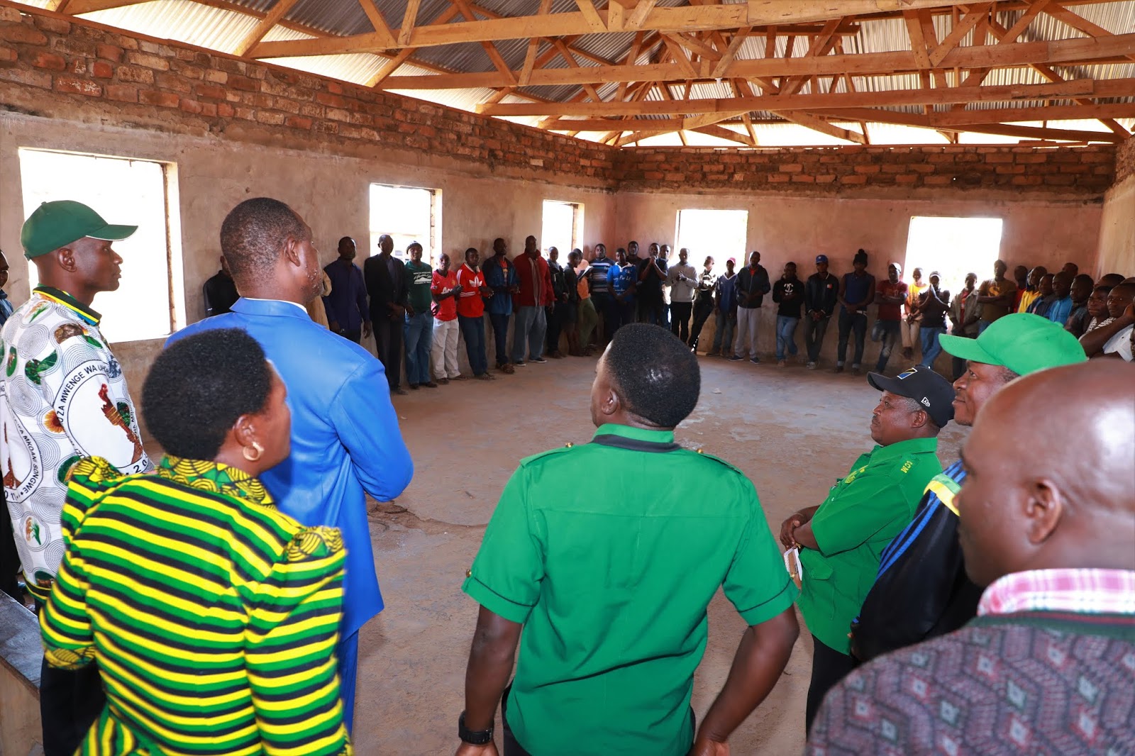 Mbunge wa Jimbo la Vwawa mkoani Songwe ambaye ni Waziri wa Kilimo Mhe Japhet Hasunga akisisitiza jambo mbele ya wanachama wa chama cha Madereva wa Malori mkoani Songwe tarehe 24 Julai 2019 wakati alipokutana nao kwa ajili ya mazungumzo.