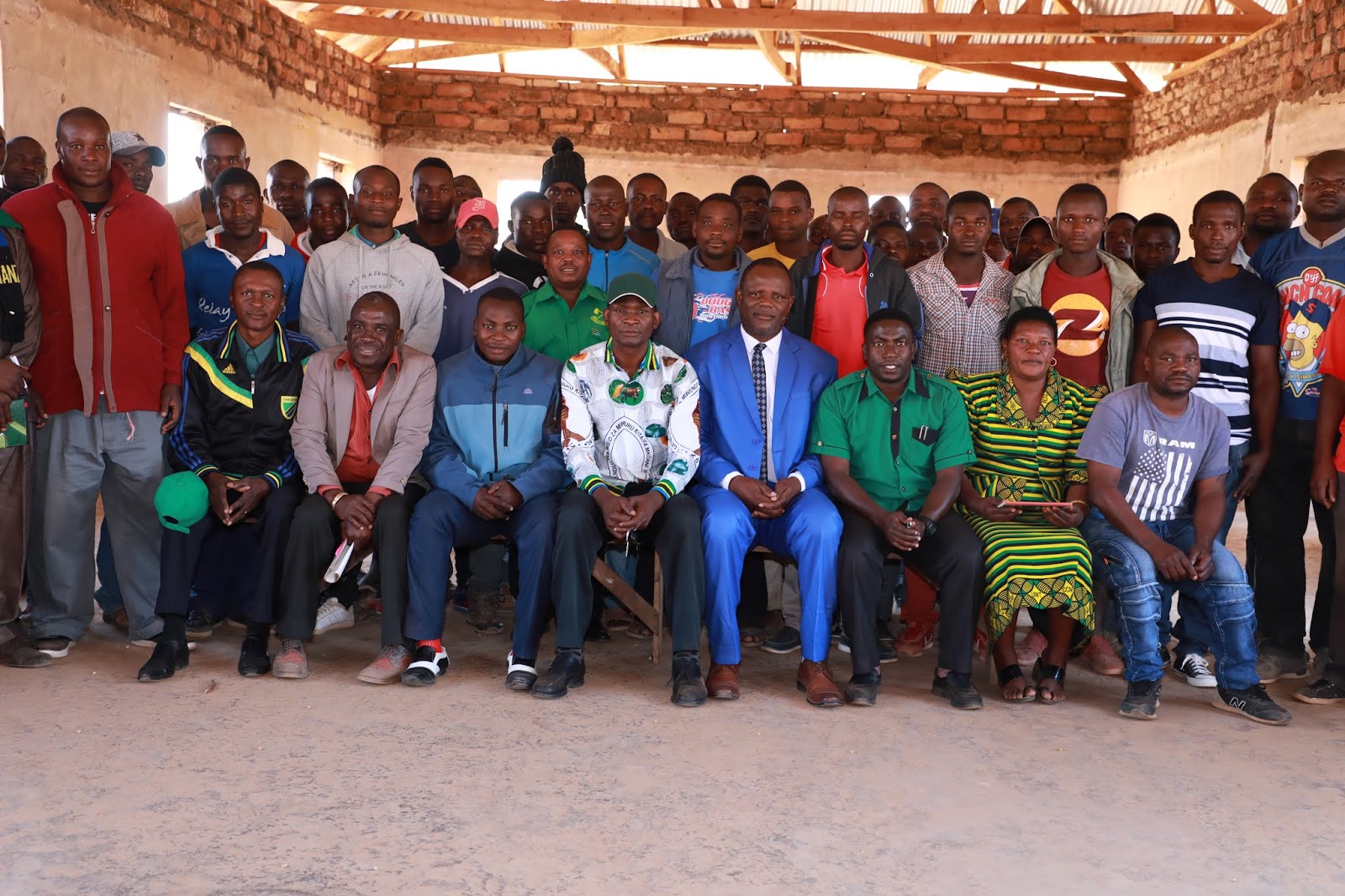Mbunge wa Jimbo la Vwawa mkoani Songwe ambaye ni Waziri wa Kilimo Mhe Japhet Hasunga akiwa katika picha ya pamoja na wanachama wa chama cha Madereva wa Malori mkoani Songwe tarehe 24 Julai 2019 wakati alipokutana nao kwa ajili ya mazungumzo.