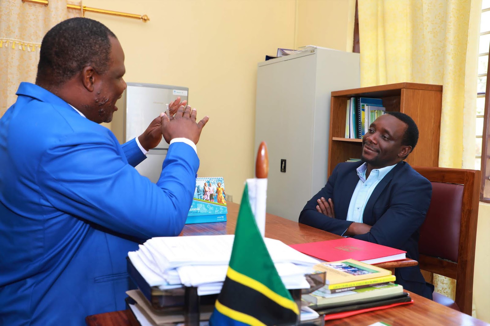 Mbunge wa Jimbo la Vwawa mkoani Songwe ambaye ni Waziri wa Kilimo Mhe Japhet Hasunga akisisitiza jambo wakati akizungumza na Katibu Tawala wa Mkoa wa Songwe Ndg David Kafulila mara baada ya kuwasili mkoani humo kw aajili ya ziara ya ukaguzi wa miradi ya maendeleo jimboni humo.
