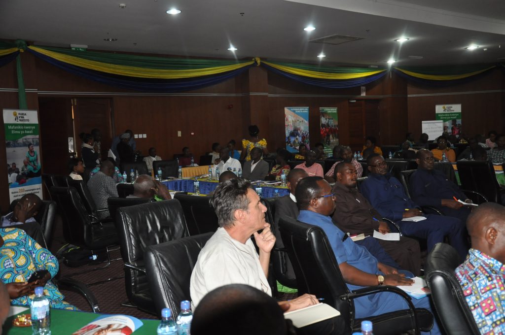 Baadhi ya washiriki wa kikao cha wadau cha kuwasilisha tathmini ya programu ya fursa kwa watoto iliyofanyika leo jijini Mwanza wakimsikiliza Naibu Katibu Mkuu Ofisi ya Rais TAMISEMI leo.