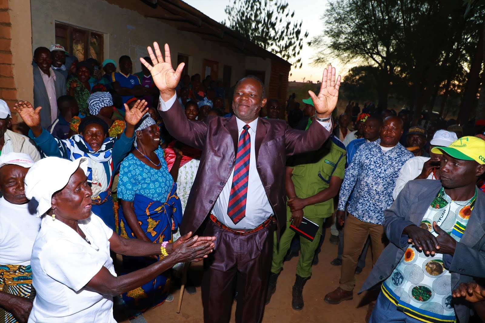 Sehemu ya Wakazi wa kijiji na kata ya Kilimampimbi wakimlaki mbunge la Jimbo la Vwawa Mkoani Songwe Mhe Japhet Hasunga ambaye ni Waziri wa Kilimo wakati alipowasili kijijini hapo tarehe 25 Julai 2019 akiwa katika ziara ya ukaguzi wa shughuli za maendeleo jimboni humo. (Picha Zote Na Mathias Canal, Wizara ya Kilimo)