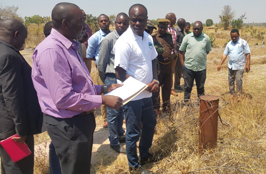 Kaimu Meneja RUWASA Wilaya ya Mbogwe, Mhandisi Daudi Amlima akisoma taarifa kwa Naibu Waziri wa Maji, Jumaa Aweso inayohusu Mradi wa Maji wa kisima kirefu wa Iboya uliopo katika Halmashauri ya Wilaya ya Mbogwe, mkoani Geita.