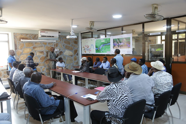 Msafara wa TCRA ukipatiwa maelezo ya utekelezaji wa Mradi.