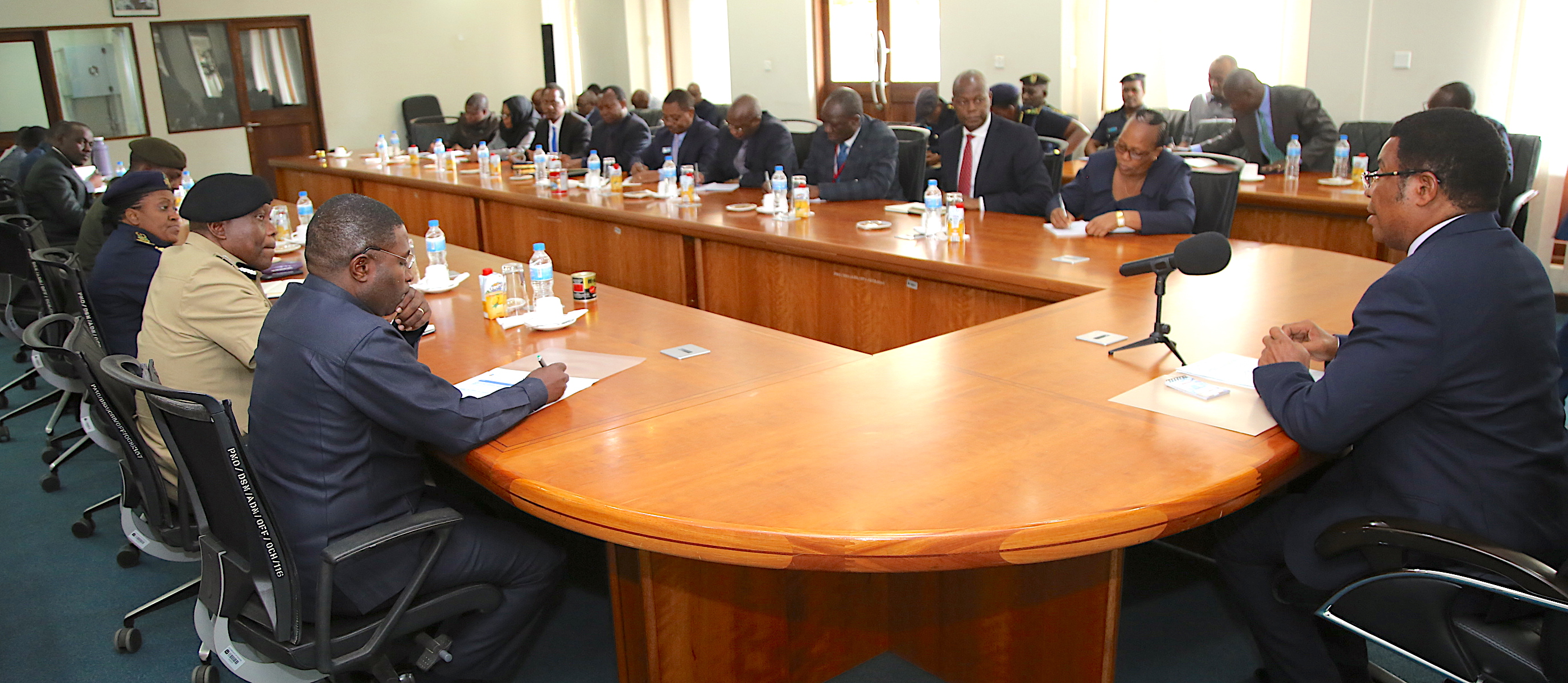 Waziri Mkuu, Kassim Majaliwa akiongoza kikao cha utekelezaji wa haraka wa maagizo ya Rais Dkt. John Pombe Magufuli kuhusu mradi wa kufua Umeme wa mto Rufiji, kilichofanyika kwenye ukumbi wa Ofisi ya Waziri Mkuu jijini Dar Es Salaam, Julai 31, 2019 (Picha na Ofisi ya Waziri Mkuu)