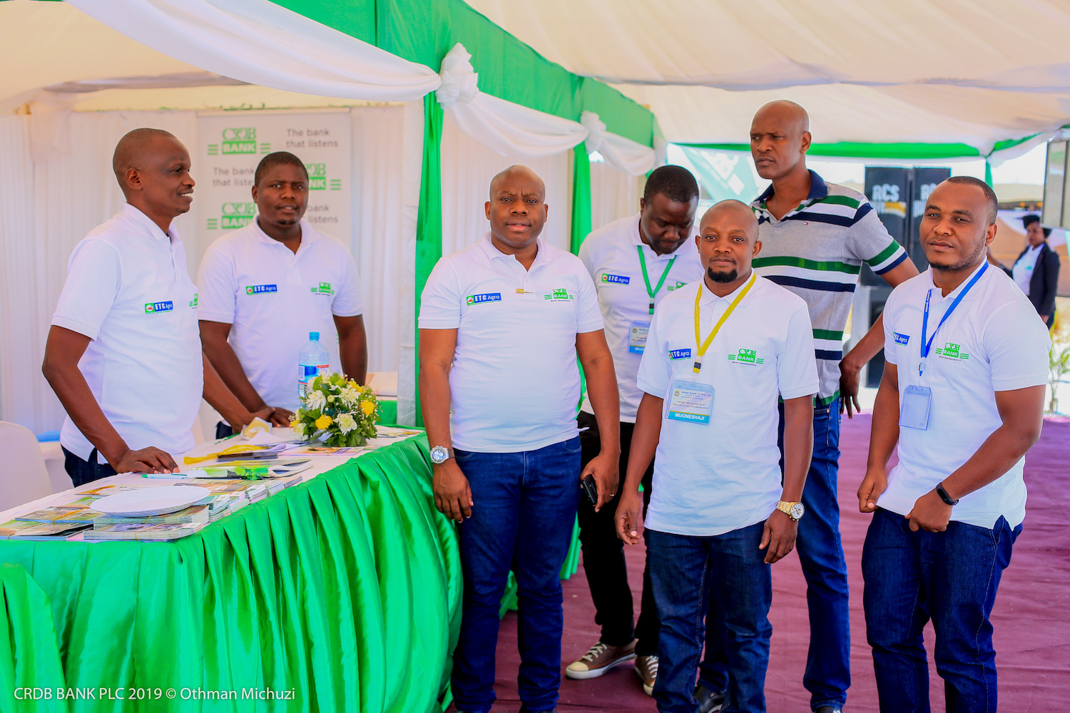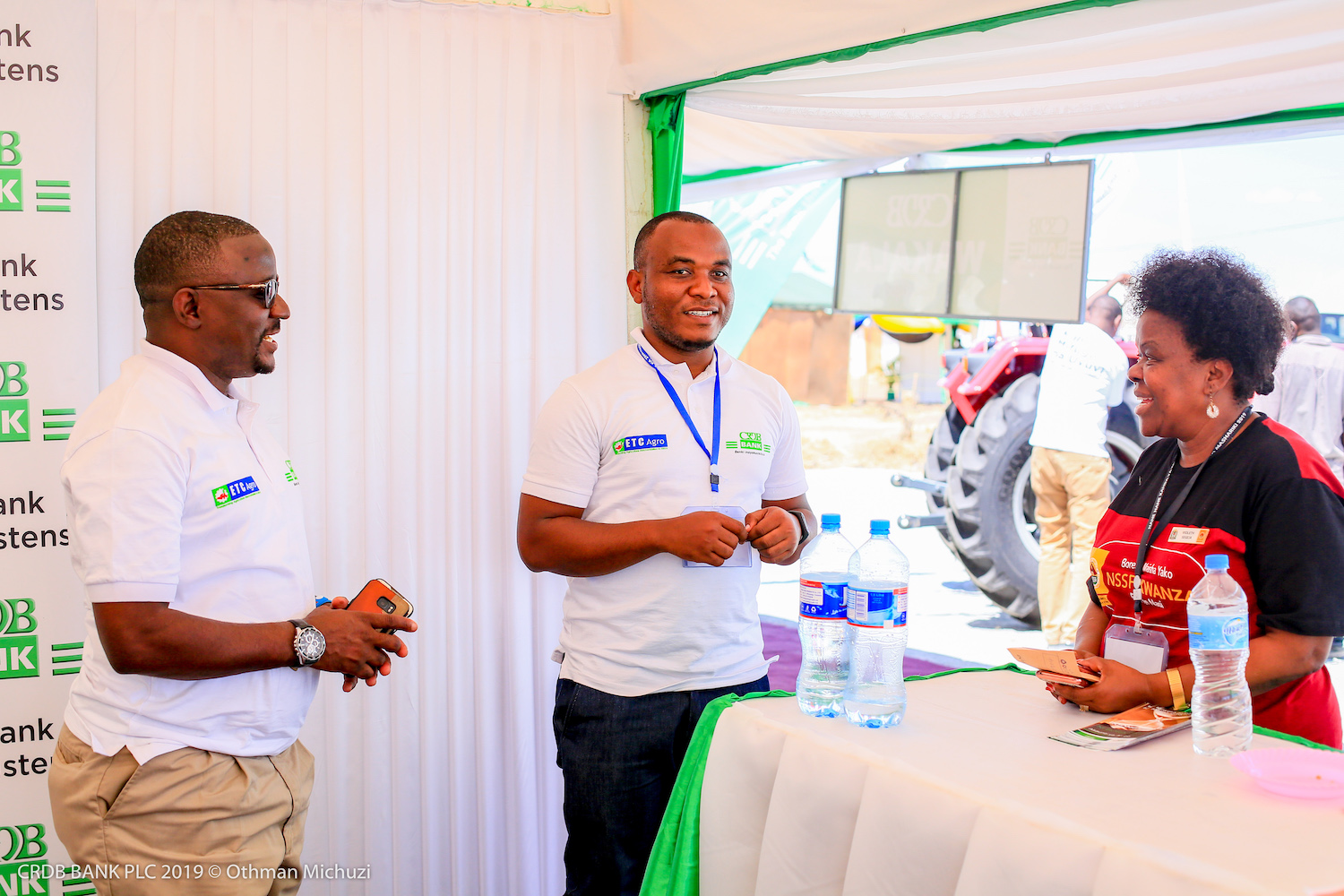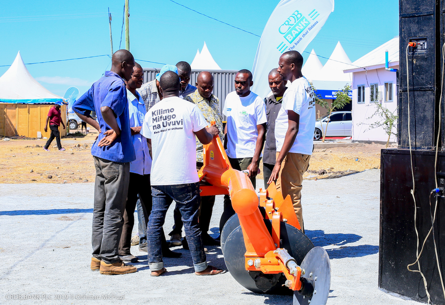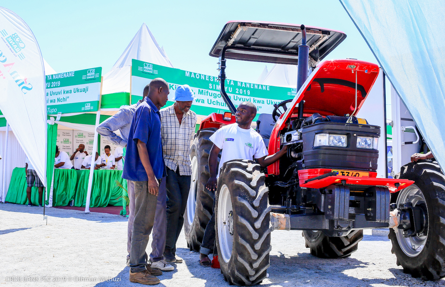 Sehemu ya Wateja wa Benki ya CRDB wakipatiwa maelezo ya namna ya matumizi ya Matrekta yanayokopeshwa na Benki hiyo kwa kushirikiana na kampuni ya ETC Agro, wakati wa maonyesho ya 26 ya Kilimo, Mifugo na Uvuvi (Nane Nane 2019), yanayofanyika kwenye viwanja vya Nyakabindi, Bariadi Mkoani Simiyu.