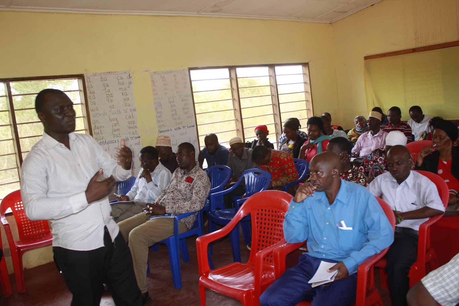 Mratibu wa Mradi wa Kuhamasisha uwajibikaji wa Jamii na Mamlaka zinazohusika katika kuboresha elimu kwenye vijiji nane wilaya ya Handeni Goodluck Malilo akizungumza