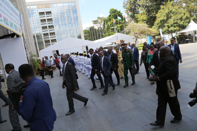 Rais wa Jamhuri ya Muungano wa Tanzania, Dkt John Pombe Magufuli akiwasili katika ukumbi wa Julius Nyerere kwa ajili ya uzinduzi wa maonyesho ya nne ya Wiki ya Viwanda kwa nchi za SADC yanayofanyika jijini Dar es Salaam leo Jumatatu Agosti 5, 2019.