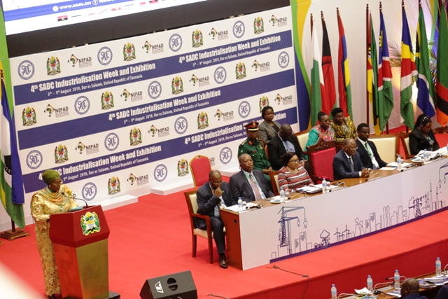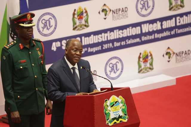 Rais wa Jamhuri ya Muungano wa Tanzania, Dkt John Pombe Magufuli akihutubia katika ufunguzi wa maadhimisho ya nne ya Wiki ya Viwanda kwa nchi za SADC yanayofanyika jijini Dar es Salaam leo Jumatatu Agosti 5, 2019. Kauli mbiu ya maadhimisho hayo ni “Mazingira Wezeshi kwa Maendeleo na Jumuishi ya Viwanda, Kukuza Biashara na Ajira ndani ya Jumuiya”.