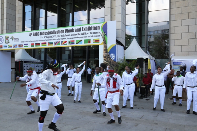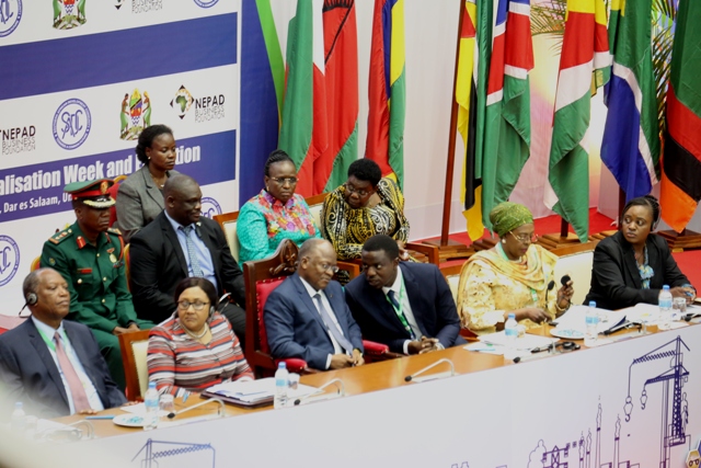 Baadhi ya mawaziri wa Jamhuri ya Muungano wa Tanzania na Serikali ya Mapinduzi ya Zanzibar pamoja na viongozi wa Jumuiya ya Kiuchumi ya nchi za kusini mwa Afrika SADC wakiwa kwenye ufunguzi wa maonyesho ya nne ya Wiki ya Viwanda kwa nchi za SADC yanayofanyika jijini Dar es Salaam.