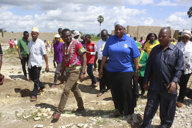 WAZIRI wa Afya Maendeleo ya Jamii Jinsia Wazee na Watoto na Mbunge wa Viti Maalumu Mkoa wa Tanga(CCM) Ummy Mwalimu katikati akiwa na Mkuu wa wilaya ya Tanga Thobias Mwilapwa kulia wakati wa ziara ya kutembelea hospitali ya wilaya ya Tanga inayojengwa eneo la Masiwani na kituo cha Afya Mwakidila