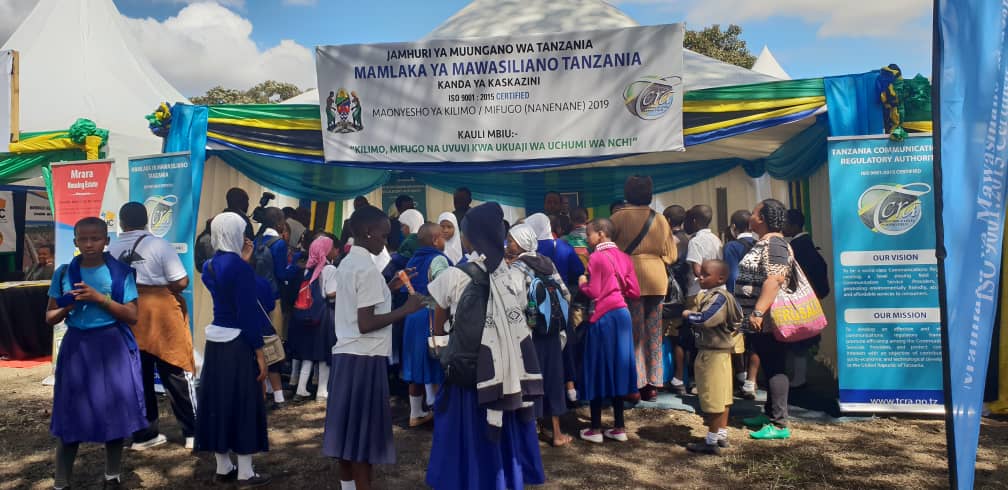 Wanafunzi wakipata elimu ya mawasiliano katika banda la TCRA katika Maonesho ya Nanenane Kanda ya Kaskazini mkoani Arusha