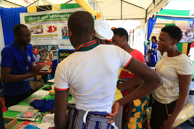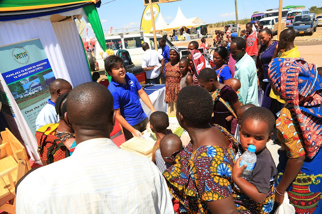 JICA akielezea jinsi kibao kinavyoweza kurahisisha kazi ya ufuaji nguo kwa wananachi waliotembela banda la VETA kwenye maonesho ya Nanenane ,kitaifa viwanja vya Nyakabindi nje kidogo ya Mji wa Bariadi Mkoani Simiyu.