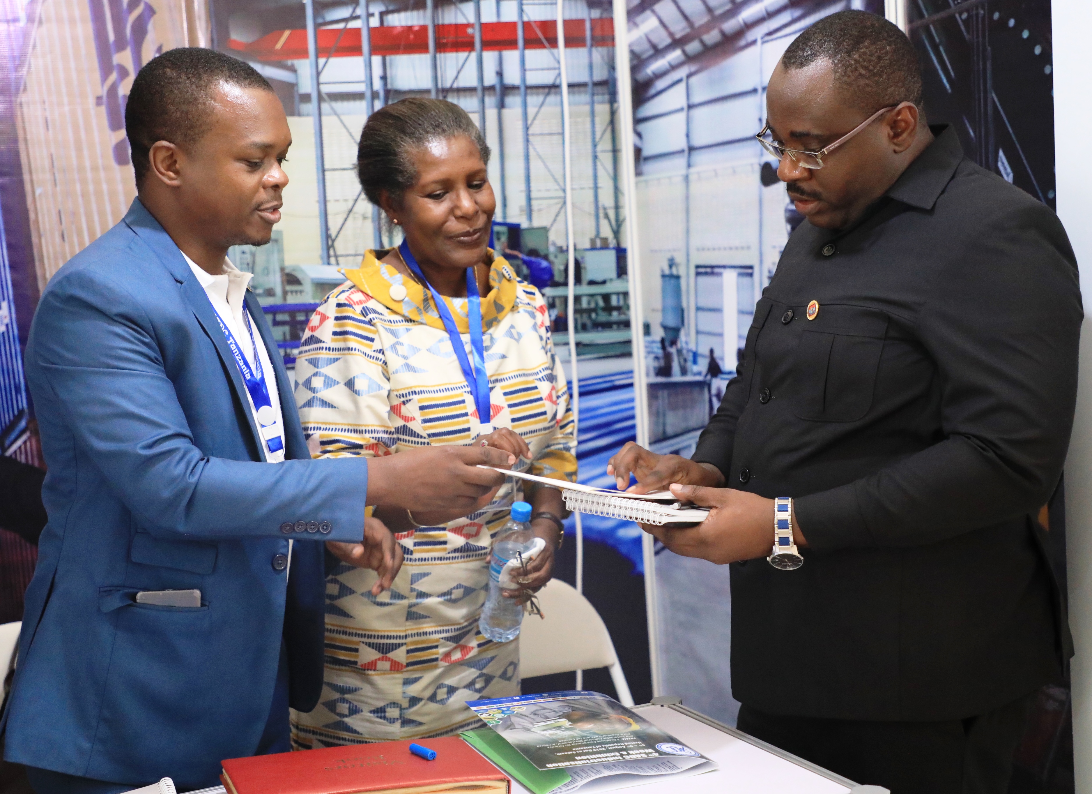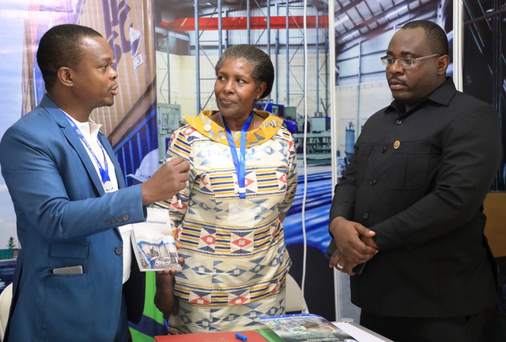 Viwanda kutoka Nchi Wanachama wa Jumuiya ya SADC yanayoendelea katika Kituo cha Mikutano cha Kimataifa Julius Nyerere, Viwanja wa Karimjee na Gymkana Jijini Dar es Salaam, wengine ni Mkurugenzi wa Kampuni ya Konnectt Wire Sheila Mwapachu na Meneja Masoko na Uhusiano wa Benki ya Maendeleo (TIB), Saidi Mkabakuli.