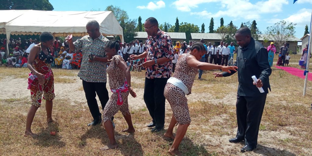 vijiji ( REA) Mhandisi Amos Maganga wakicheza ngoma asili ya wenyeji wa
