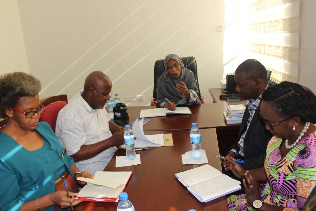 Kaimu Mtendaji Mkuu wa UCSAF, Bi. Justina Mashiba (aliyesimama)akitoa taarifa ya Mfuko huo kwa Waziri wa Ujenzi, Mawasiliano na Usafirishaji wa Serikali ya Mapinduzi ya Zanzibar, Dkt. Sira Ubwa Mamboya (aliyevaa ushungi)wakati wa ziara yake. Pembeni kwake ni Naibu Waziri wa Uchukuzi na Mawasiliano Mhandisi Atashasta Nditiye.