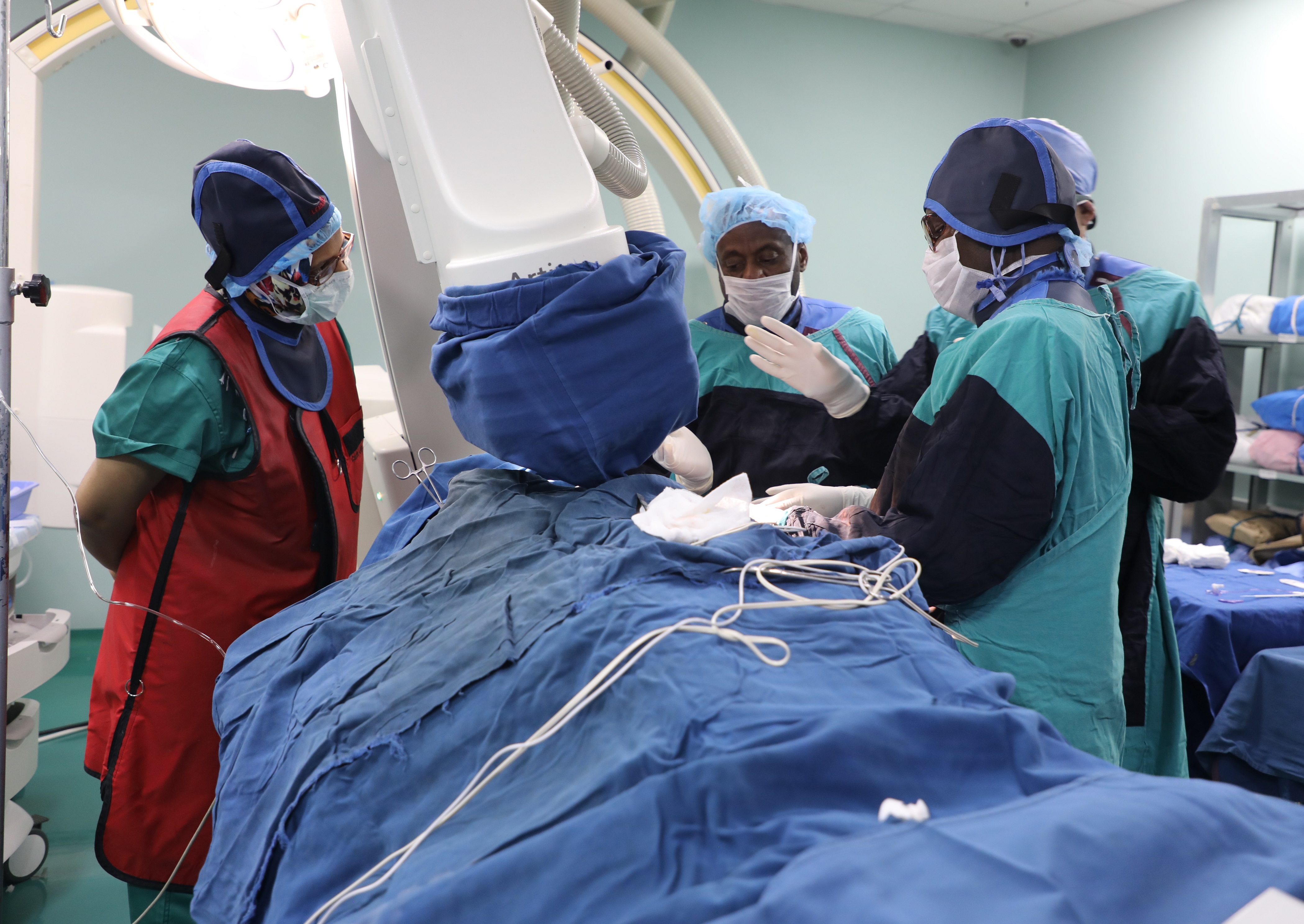 Madaktari bingwa wa magonjwa ya moyo wa Taasisi ya Moyo Jakaya Kikwete (JKCI) na wenzao wa Shirika la Madaktari Afrika la nchini Marekani wakizibua valvu za mgonjwa zilizokuwa zimeziba katika kambi maalum ya matibabu ya moyo ya wiki mbili inayoendelea katika Taasisi hiyo. Jumla ya wagonjwa 19 ambao ni watoto na watu wazima wenye matatizo ya moyo ya kuzaliwa nayo wamefanyiwa upasuaji wa kufungua na bila kifua katika kambi hiyo.