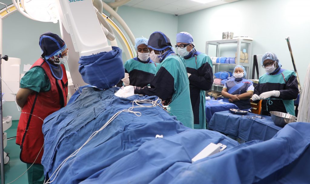 Madaktari bingwa wa magonjwa ya moyo wa Taasisi ya Moyo Jakaya Kikwete (JKCI) na wenzao wa Shirika la Madaktari Afrika la nchini Marekani wakizibua valvu za mgonjwa zilizokuwa zimeziba katika kambi maalum ya matibabu ya moyo ya wiki mbili inayoendelea katika Taasisi hiyo. Jumla ya wagonjwa 19 ambao ni watoto na watu wazima wenye matatizo ya moyo ya kuzaliwa nayo wamefanyiwa upasuaji wa kufungua na bila kifua katika kambi hiyo.