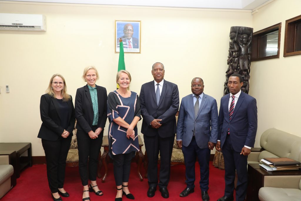 Waziri wa Mambo ya Nje na Ushirikiano wa Afrika Mashariki Prof. Palamagamba John Kabudi akiwa katika picha ya pamoja na Balozi Mteule wa Denmark hapa Nchini,Mhe. Mette Norgaard Dissing-Spandet pamoja na Wakurugenzi wa Idara ya Ulaya na Amerika Bw Jestas Nyamanga na Maafisa wa Wizara ya Mambo ya Nje na Ushirikiano wa Afrika Mashariki pamoja na Ubalozi wa Denmark nchini Tanzania.