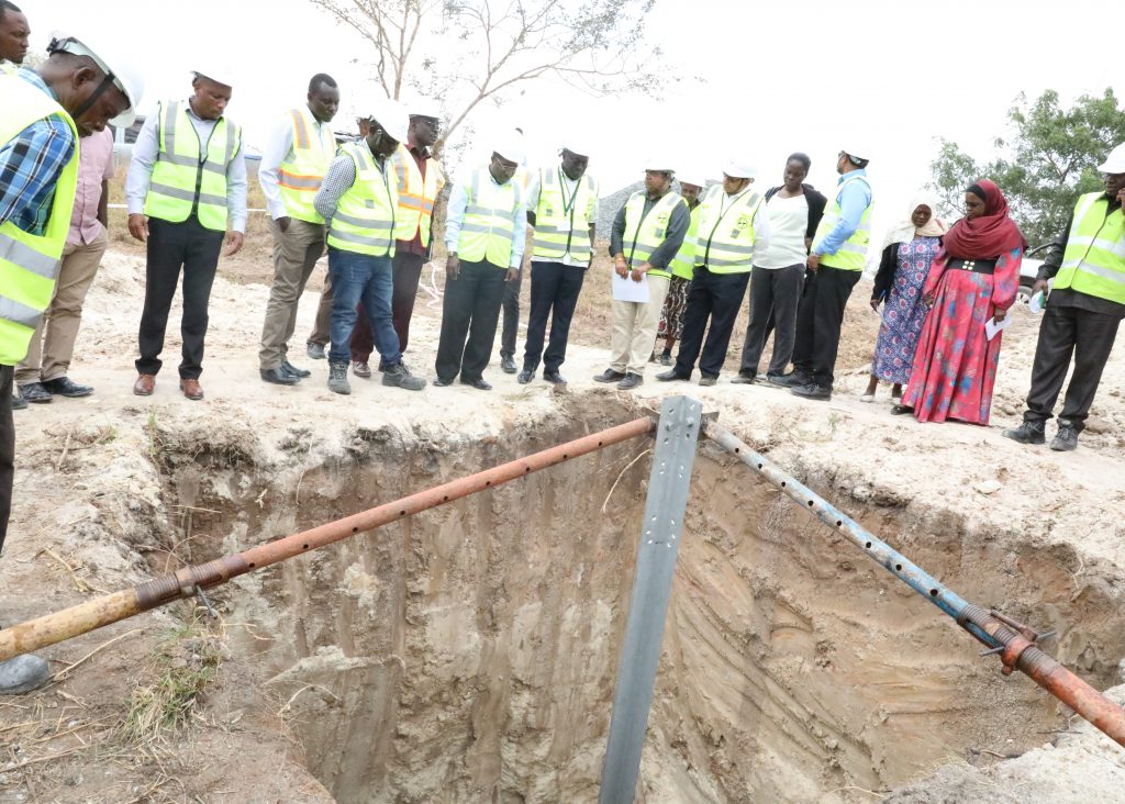 Katika hatua nyingine, Waziri wa Nishati, alikagua kazi ya ujenzi wa nguzo za umeme (kV 220) utakaotumika kuendesha Treni za kisasa katika Reli ya Kisasa ya SGR.