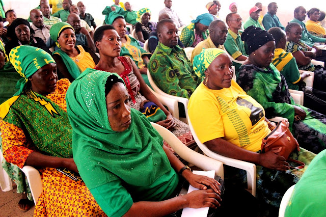 Wajumbe wa Umoja wa wazazi CCM Mkoa wa Shinyanga wakiwa kwenye Kongamano la kumpongeza Rais John Magufuli la kutekeleza ipasavyo ilani ya uchaguzi ya CCM ndani ya miaka yake Minne akiwa madarakani.