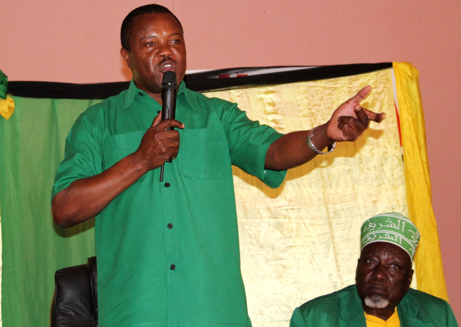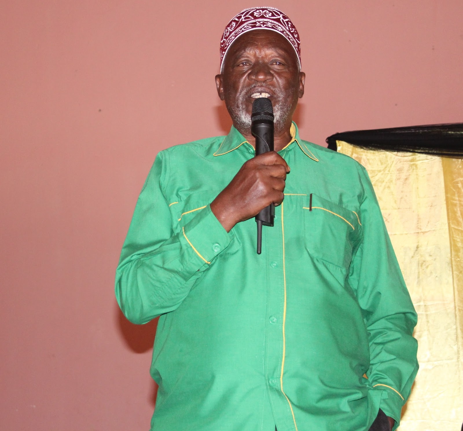 Mwenyekiti wa Umoja wa Wazazi CCM mkoa wa Shinyanga Salum Abdalah Simba akizungumza wakati Umoja huo ukitoa tamko la kumpongeza rais John Pombe Magufuli kwa kutekeleza kikamilifu ilani ya CCM.