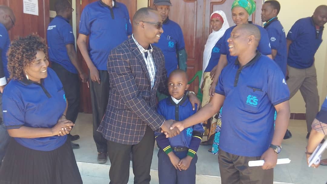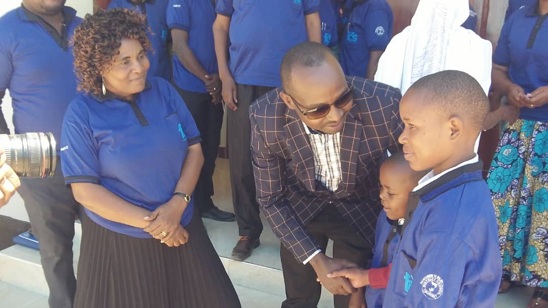 Mgeni rasmi wa mkutano huo, Mkuu wa Wilaya ya Ikungi, Edward Mpogolo, akisalimiana na wanafunzi walioshiriki mkutano huo.