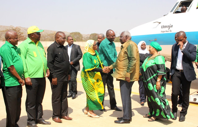Awali Makamu wa Pili wa Rais Zanzibar Balozi Seif Ali Iddi akiwasili kwenye uwanja wa ndege Buzwagi wilayani Kahama Tayari kwa ziara mkoani Shinyanga ya kuangalia utekelezaji wa ilani ya uchaguzi ya Chama Cha Mapinduzi CCM kwenye majimbo yote mkoani humo.