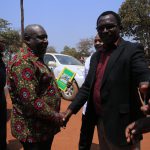 Waziri wa Elimu, Sayansi na Teknolojia Profesa. Joyce Ndalichako akimpongeza Makamu Mkuu wa Taasisi ya Nelson Mandela Prof. Emmanuel Luoga baada ya kuzindua Kituo cha Umahiri cha Teknolojia ya Habari na Mawasiliano.