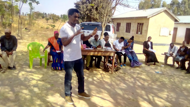 Kaimu Meneja Mtendaji wa Shirika la ESTL, Philbert Swai,akitoa elimu juu ya madhara ya ukeketaji na ukatili wa kijinsia kwenye mkutano wa hadhara uliofanyika katika Kijiji cha Msikii Wilaya ya Singida.
