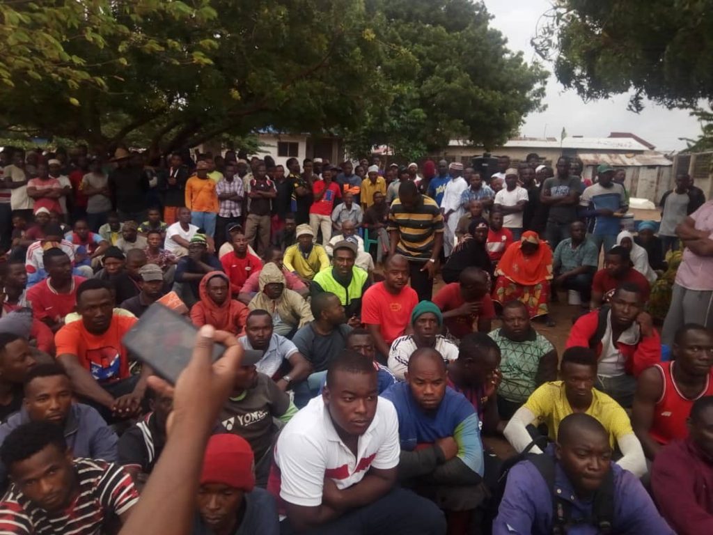 Wavuvi wakimsikiliza Naibu Waziri wa Uvuvi, Mh.Abdallah Ulega baada ya kutembelea mnada wa huuzaji Samaki Kunduchi Jijini Dar es Salaam