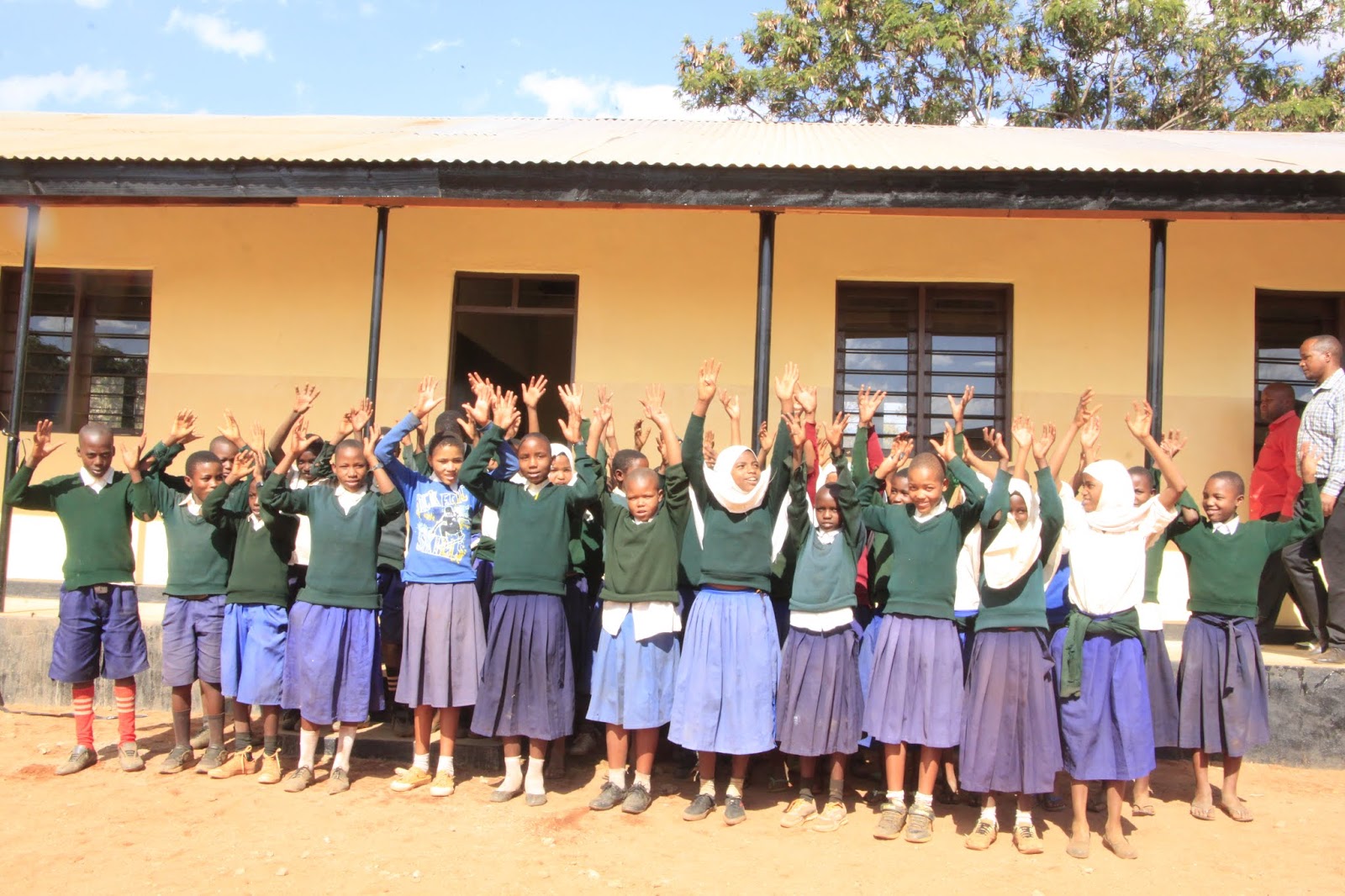 Wanafunzi wakiimba nyimbo kufurahia kukabidhiwa madarasa hayo.