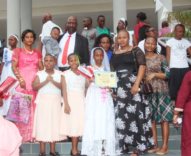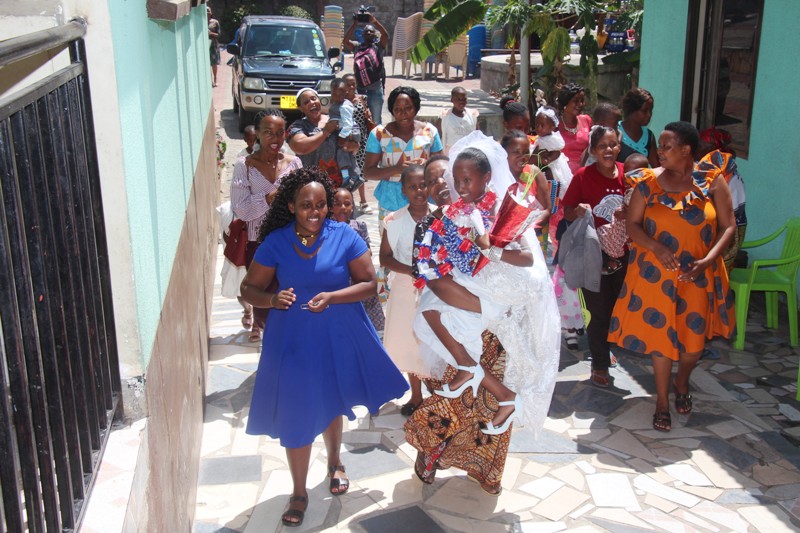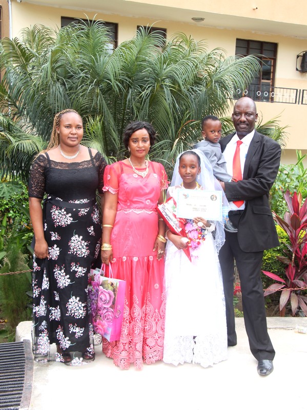 | Mtoto Angel Raymond Mushi akipongezwa na wazazi wake Mr.&Mrs Raymond Mushi kwenye hafla hiyoiliyofanyika nyumbani kwao. |