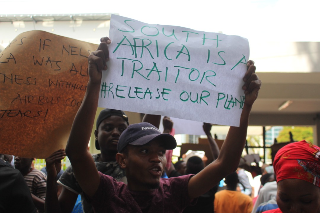 “Tumekuja hapa kuwaambia wenzetu wa Afrika ya Kusini kwamba uungwana sio tu kulipa fadhila kwa aliyekusaidia, bali hata matendo tu yanatosha, haiwezekani sisi tumewasaidia wapate uhuru leo hii hawana hata aibu wanakamata ndege yetu tena kwa sababu zisizokua na msingi” Alisema mmoja wa waandamanaji hao.