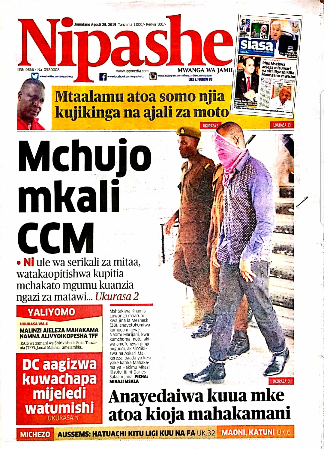 MagazetiPITIA VICHWA VYA HABARI KATIKA MAGAZETI YA LEO JUMATANO AUGUST 28,2019 Last updated: 2019/08/28 at 3:31 AM joseph 6 years ago Share SHARE joseph August 28, 2019 August 28, 2019 Share this Article Facebook Twitter Email Print Previous Article VIONGOZI WA VIJIJI NA HALMASHAURI WATAKIWA KUTENGA FEDHA ZA KUUNGANISHA UMEME Next Article KIWANDA CHA KUCHAKATA MUHOGO MKURANGA KUONDOA TATIZO LA UKOSEFU WA SOKO KWA WAKULIMA-NDIKILO