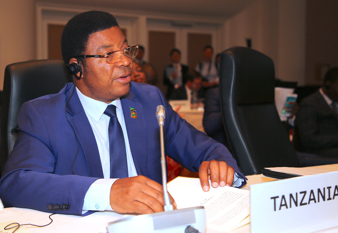 Waziri Mkuu, Kassim Majaliwa akizungumza wakati alipochangia mada kuhusu kuimarisha amani na utulivu Barani Afrika katikati mkutano wa saba wa Kimataifa wa Tokyo kuhusu Maendeleo katika Bara la Afrika (TICAD 7) uliohitimishwa leo kwenye Ukumbi wa hoteli ya Pacifiko Yokohama nchini Japan. (Picha na Ofisi ya Waziri Mkuu)