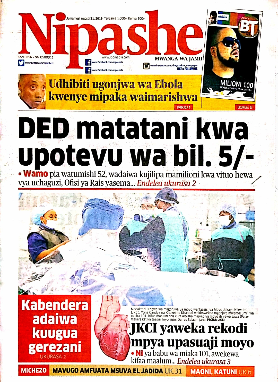 MagazetiPITIA VICHWA VYA HABARI KATIKA MAGAZETI YA LEO JUMAMOSI AUGUST 31,2019 Last updated: 2019/08/31 at 3:38 AM Alex Sonna 7 years ago Share SHARE Alex Sonna August 31, 2019 August 31, 2019 Share this Article Facebook Twitter Email Print Previous Article MKUTANO MKUU RSA WAFANYIKA JIJINI MWANZA Next Article MASHINDANO YA WAKUU WA MAJESHI YA POLISI YA NCHI ZA KANDA YA AFRIKA MASHARIKI (EAPCCO GAMES 2019) YANAYOFANYIKA JIJINI NAIROBI NCHINI KENYA, YANATARAJIA KUFUNGWA LEO AGOSTI 31, 2019