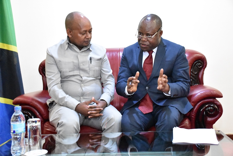 Afisa Mtendaji Mkuu wa PPRA, Mhandisi Leonard Kapongo akifafanua jambo kwa Mkuu wa Wilaya ya Arusha, Mh. Gabriel Daqqaro, kabla ya Ufunguzi wa awamu ya nne ya mafunzo ya TANePS, jijini Arusha.