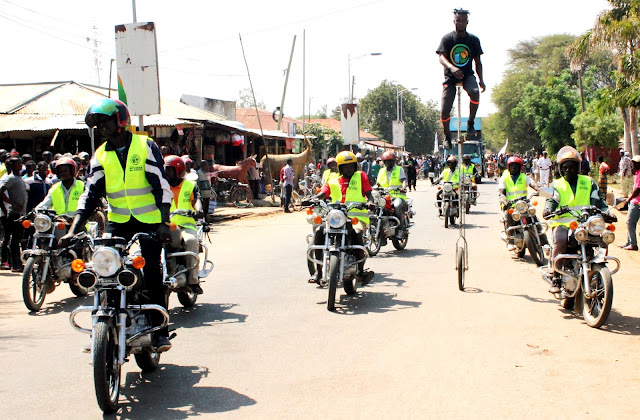 Waendesha Bodaboda wakiwa kwenye maandamano ya kwenda kuzindua kampeni ya nyumba ni choo, kwenye viwanja vya Zimamoto Shinyanga Mjini, kwa kuhamasisha wananchi wa mkoa wa Shinyanga wawe na vyoo bora pamoja na kuvitumia.
