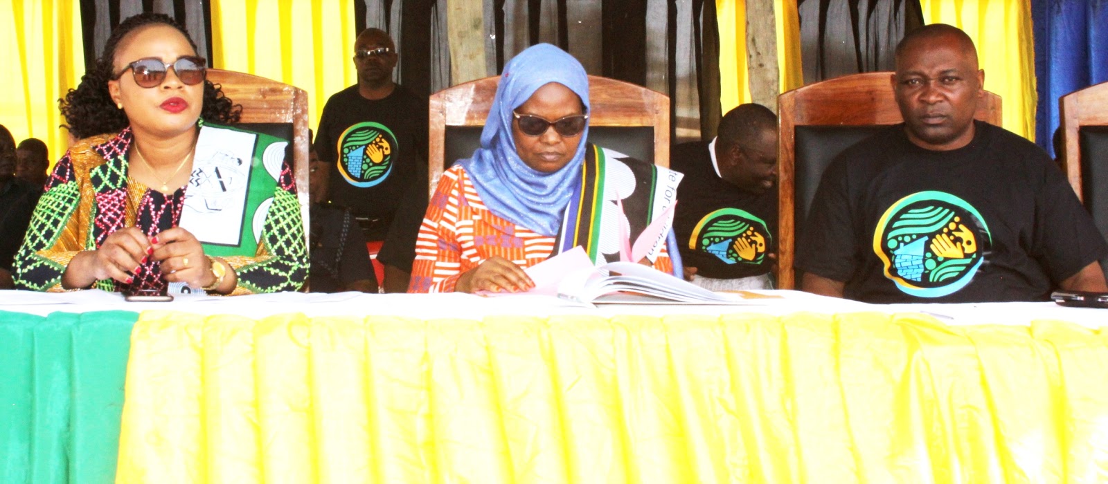 Mkuu wa mkoa wa Shinyanga Mhe. Zainab Telack katikati, akiwa na mkuu wa wilaya ya Shinyanga Jasinta Mboneko (wa kwanza kushoto), pamoja na katibu tawala wa mkoa wa Shinyanga Albert Msovela kabla ya kuzindua kampeni hiyo ya nyumba ni choo.