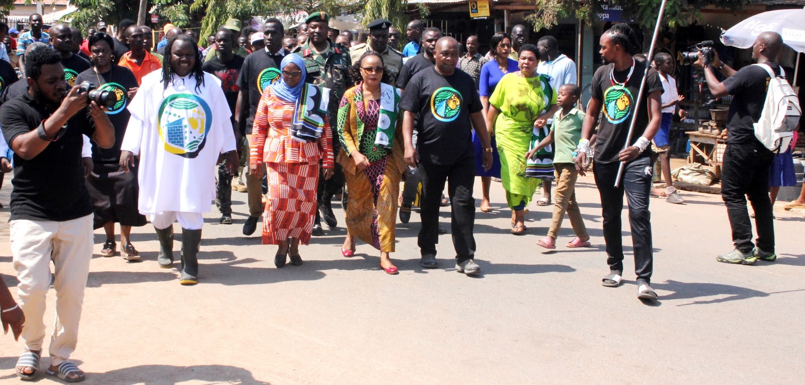 Awali Mkuu wa mkoa wa Shinyanga,Mhe. Zainabu Telack, wa pili kutoka kushoto, akiwa na mkuu wa wilaya ya Shinyanga Jasinta Mboneko, akifuatiwa na Katibu tawala wa mkoa wa Shinyanga Albert Msovela, pamoja na Mrisho Mpoto wa kwanza kushoto, akiongoza maandamano kwenda kuzindua kampeni ya nyumba ni choo.