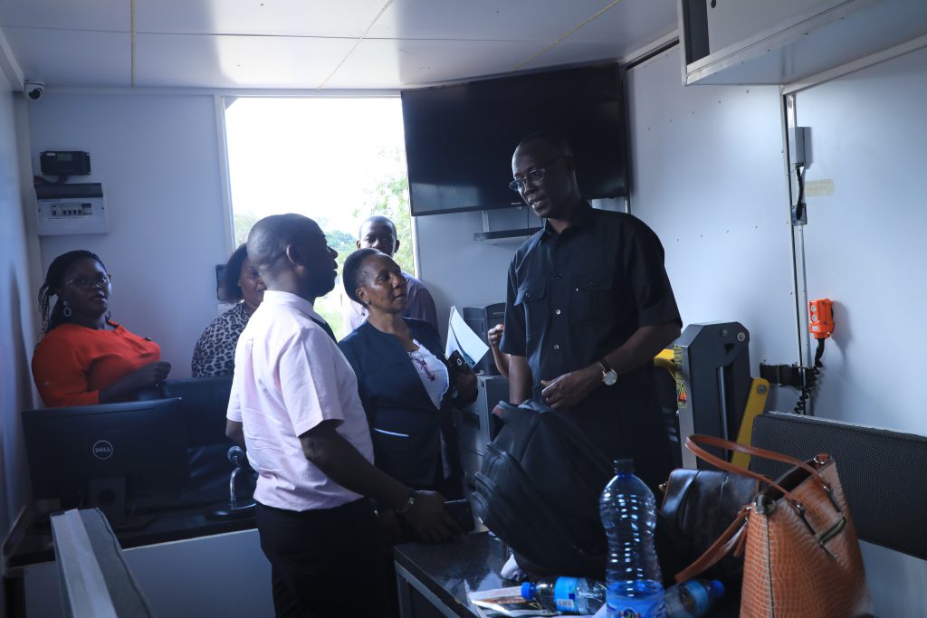 Mkuu wa Wilaya ya Ubungo, Mhe. Kisare Matiku Makori (kulia) akipatiwa elimu kuhusu gari maalum la Mahakama Inayotembea kwenye eneo la Kibamba jijini Dar es Salaam. Kushoto ni Hakimu wa Mahakama ya Mwanzo Kimara, Mhe.Geiza Mbeyu. (katikati) ni Karani wa Mkuu wa Mahakama ya Hakimu Mkazi Kisutu, Nise Mwasalemba.