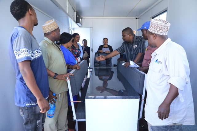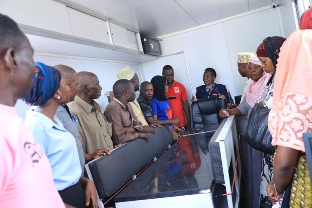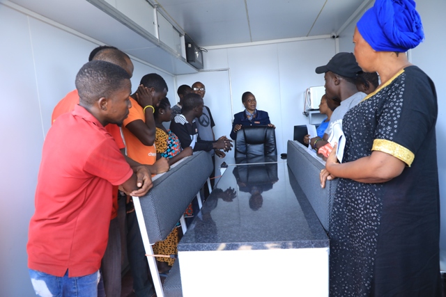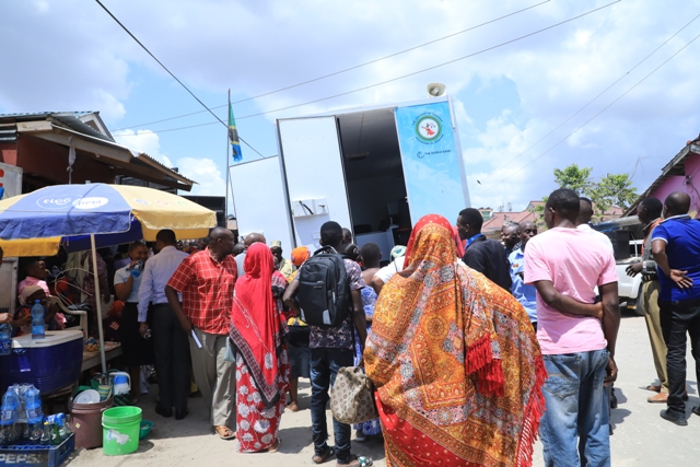Baaadhi ya wananchi wakiangalia gari maalum la Mahakama Inayotembea mara baada ya kupaki kwenye eneo la Mahakama ya Mwanzo Buza, iliyopo iliyopo Wilaya ya Temeke ,jijini Dar es Salaam, wakati gari hilo lilipokuwa likitoa elimu leo kuhusu Mahakama Inayotembea, ambayo imeanzishwa kwa ajili ya kusogeza huduma za Mahakama karibu na wananchi.