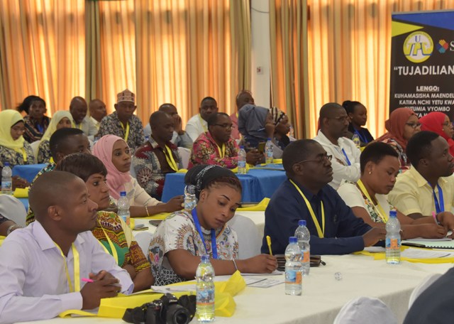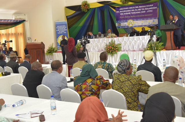 Baadhi ya Washiriki wa Mkutano Mkuu wa Wanachama wa Muungano wa Klabu za Waandishi wa Habari Tanzania-UTPC wakiwa katika ufunguzi mkutano huo uliofunguliwa leo na RAIS wa Zanzibar na Mwenyekiti wa Baraza la Mapinduzi Dk.Ali Mohamed Shein (hayupo pichani) katika ukumbi Idrisa Abdul Wakili Vuga Mjini Zanzibar . [Picha na Ikulu] 07/09/2019.