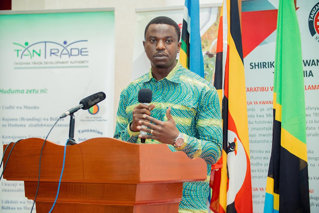 Mkurugenzi Mkuu wa Mamlaka ya Maendeleo ya Biashara Tanzania (Tantrade), Edwin Rutageruka akielezea mambo machache wakati wa kongamano la Biashara kati ya Tanzania na Uganda lililofanyika jijini Dar es Salaam, Tanzania Septemba 6-7, 2019.