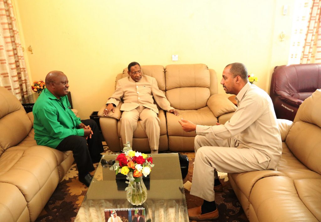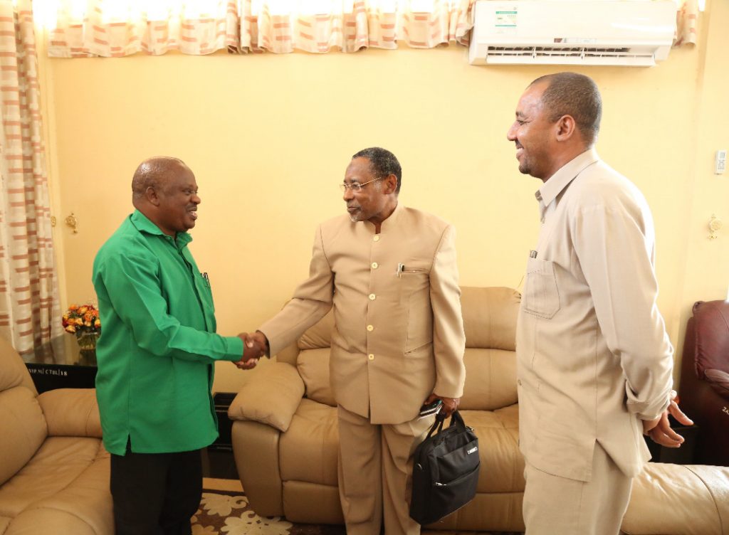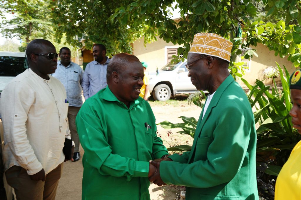 Spika wa Bunge na Mlezi wa Chama Cha Mapinduzi (CCM) Mikoa ya Kusini na Kaskazini Unguja, Mhe. Job Ndugai (kushoto) akipokelewa na Mwenyekiti wa Chama Cha Mapinduzi (CCM) Mkoa wa Kusini Unguja, Ndg. Ramadham Abdala Ali wakati alipowasili katika Ofisi za Mkoa huo leo Mjini Zanzibar.