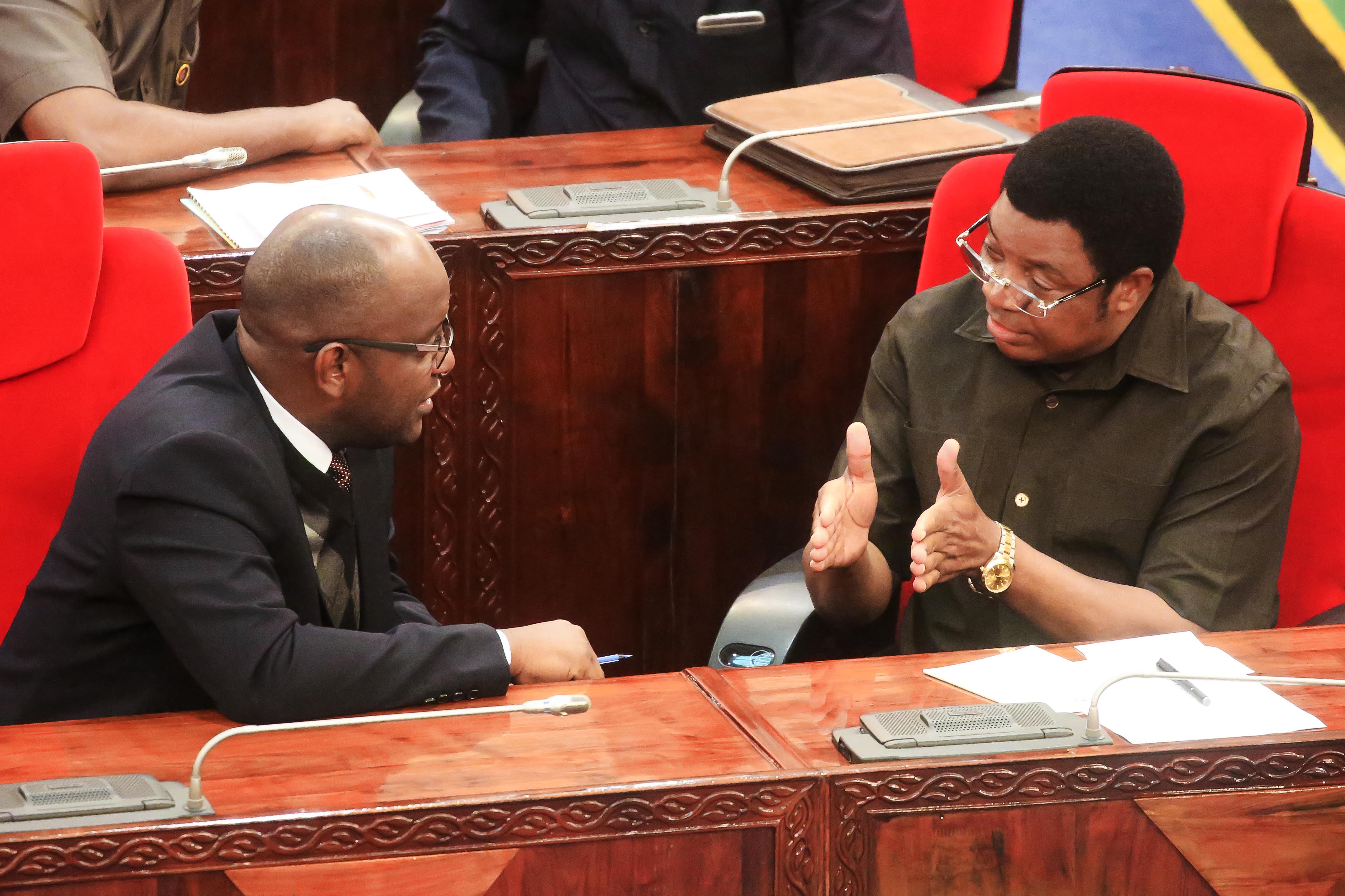 Waziri Mkuu Kassim Majaliwa, akizungumza na Mbunge wa Ndanda Cecil Mwambe, Bungeni jijini Dodoma, Septemba 11.2019. (Picha na Ofisi ya Waziri Mkuu).