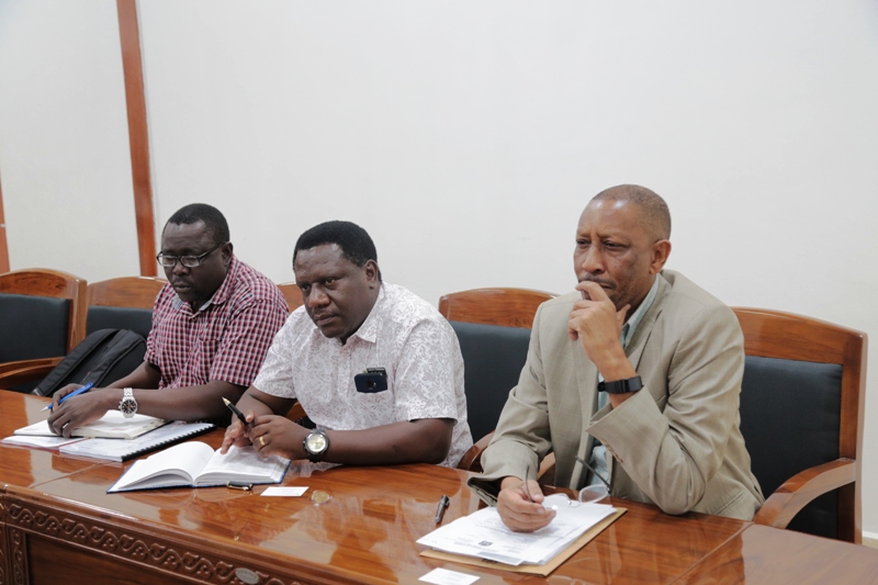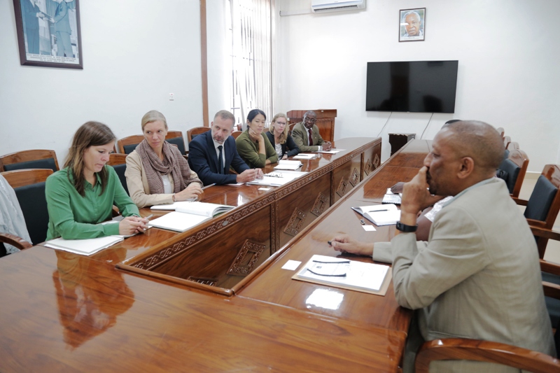 Ujumbe wa wageni kutoka Ubalozi wa Ujerumani na Shirika la GIZ kuanzia kushoto Julia Haumy wa Ubalozini, Vera Rosendahl kutoka Wizara ya Maendeleo nchini Ujerumani, Mkurugenzi Mkazi wa Shirika la GIZ, Dk Mike Falken, N. Grigolelt, Andrea H. kutoka Ubalozi wa Ujerumani na Richard Shaba kutoka Ubalozi huo Ofisi ya Dodoma wakiwa katika kikao hicho.