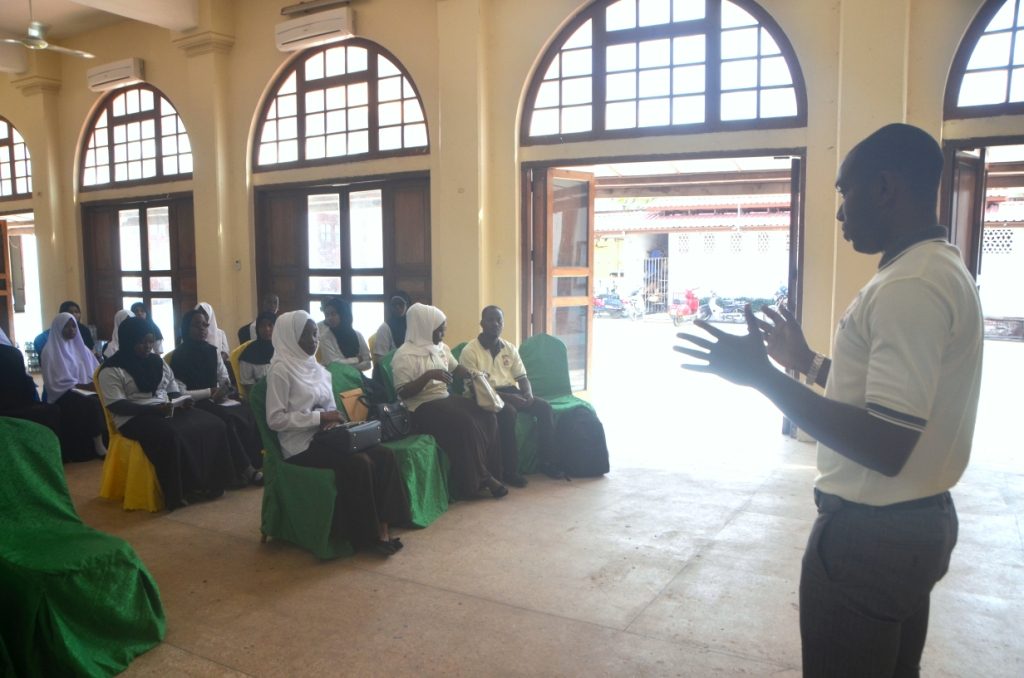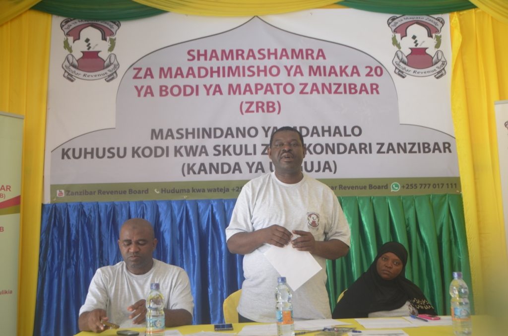 Afisa Uhusiano ZRB Makame Khamis Mohamed akizungumza machache katika Mdahalo kuhusu Kodi kwa Skuli za Sekondary Kanda ya Unguja uliofanyika katika Ukumbi wa Chuo Kikuu cha Zanzibar SUZA Kampasi ya Vuga Zanzibar.Ikiwa ni Shamra shamra za kutimia miaka 20 ya Bodi ya Mapato Zanzibar.